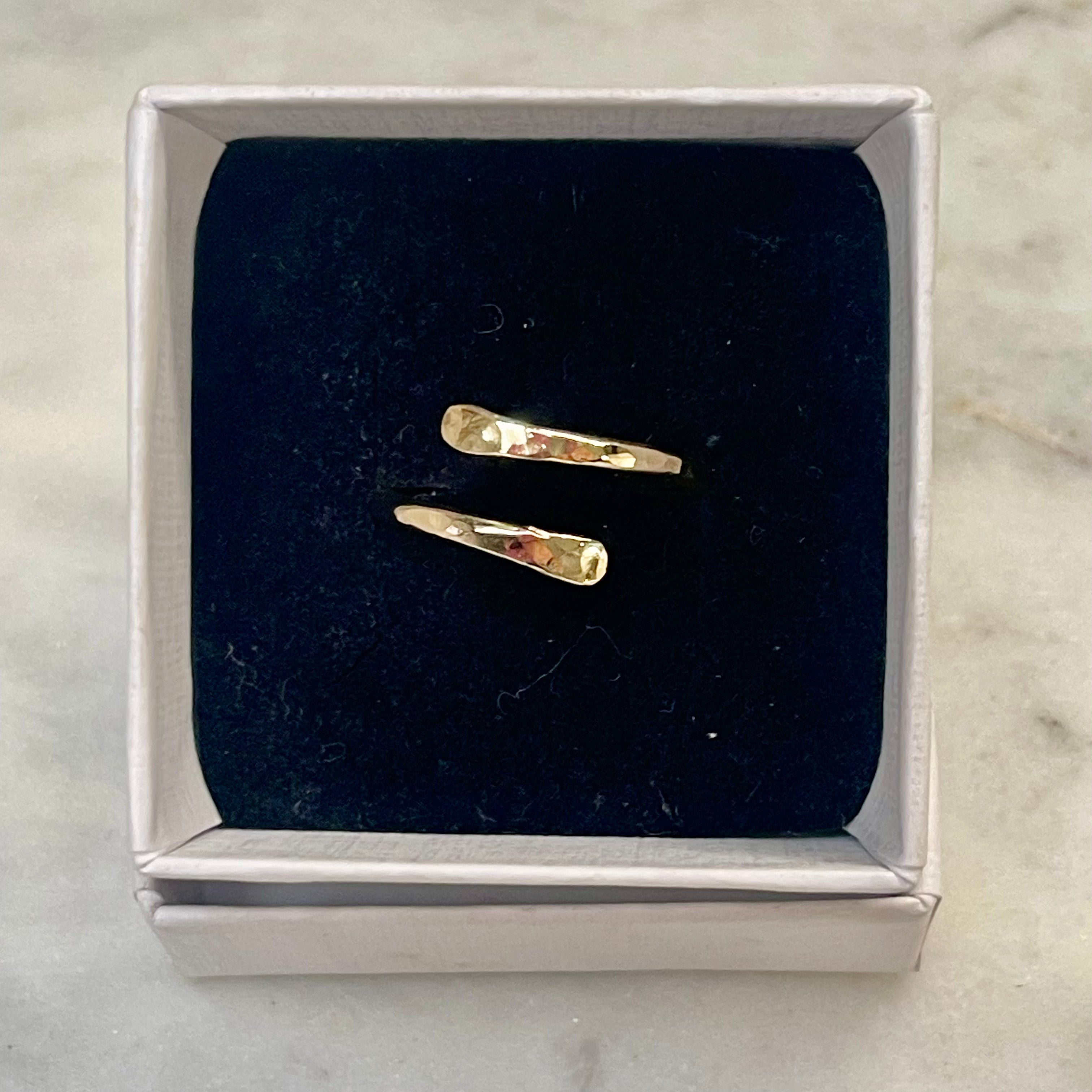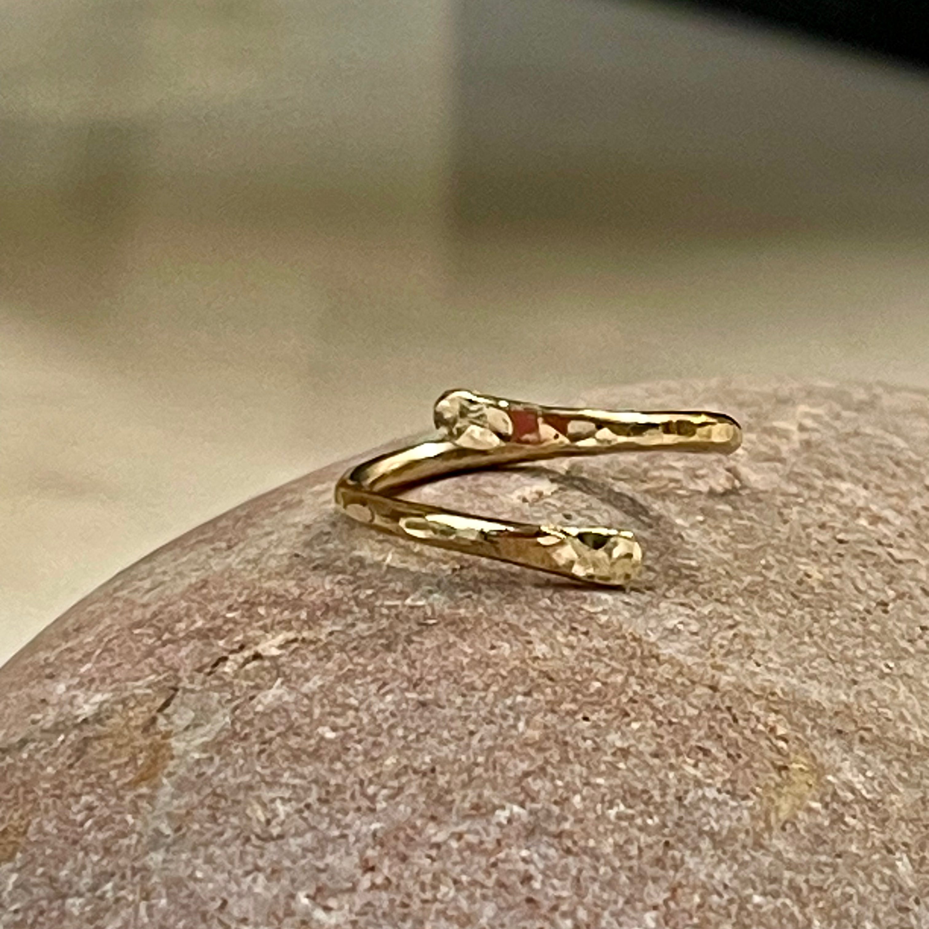 Our open crossover Gold Filled thumb ring is gorgeously versatile since it is such a simple design, it can be worn with any outfit and various accessories! The silver ring is made from 2mm thick Gold silver wire, which has been it has been hand forged and hammered using traditional silver smithing techniques to achieve beautiful, light reflective finish.