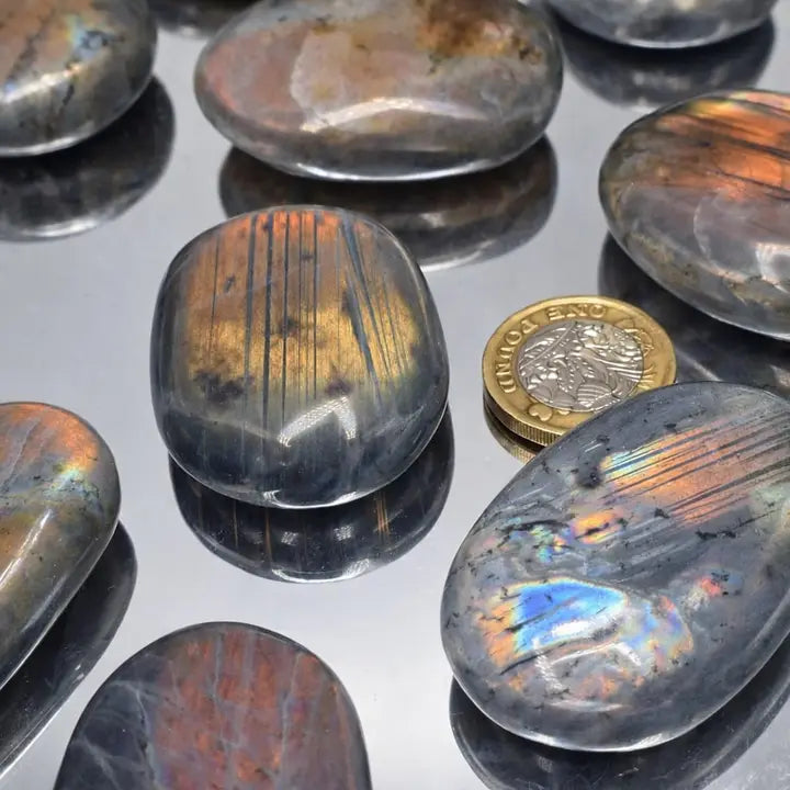Purple / Sunset Labradorite Crystal Palmstone (56-70g)