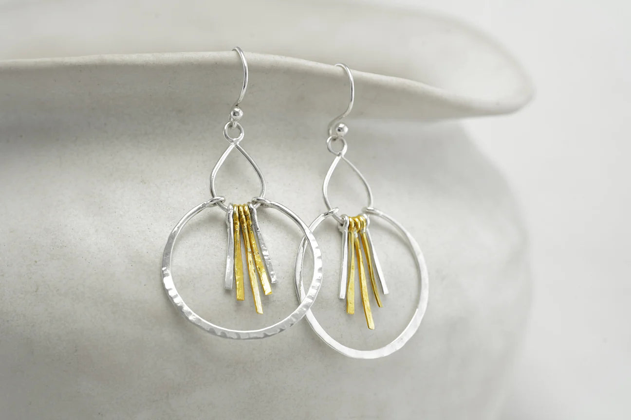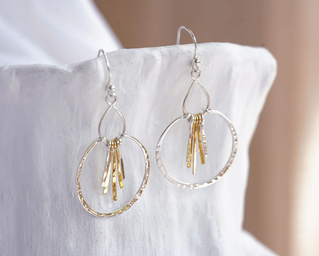 Combining textured Sterling Silver with 18KT Gold plated tassels, these statement drop earrings have plenty of flow and movement, making them an eye-catching piece perfect for special occasions and everyday wear.
