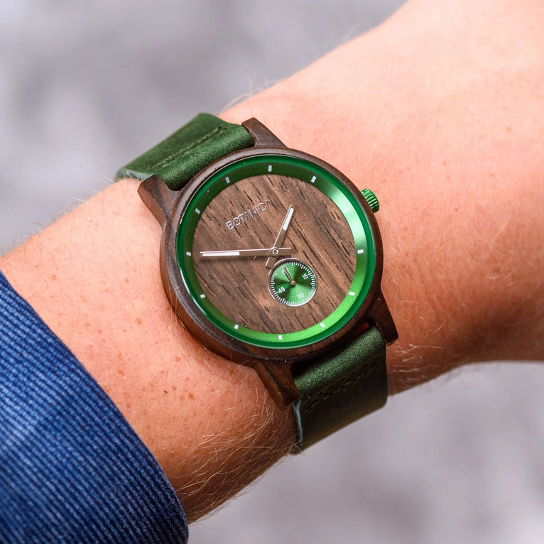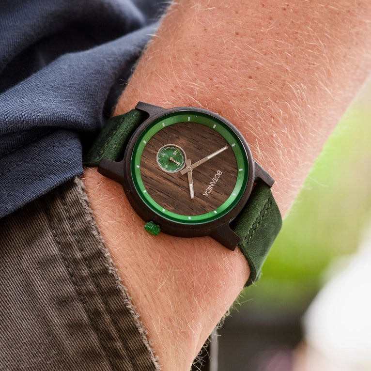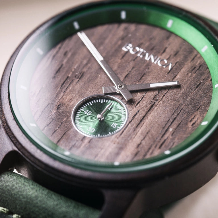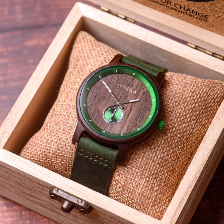 Introducing the Heidegger, a 42mm sandalwood watch inspired by the depth of philosophical thought. Featuring a rich sandalwood casing with distinctive green accents, this timepiece combines classic elegance with modern precision. The quartz movement powers a single inner dial, offering reliability and simplicity for the discerning wearer. Named after the famous philosopher, Heidegger is designed for those who appreciate both timeless wisdom and sophisticated style, making it the ideal companion for every journey and reflection.
