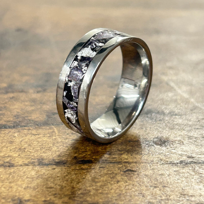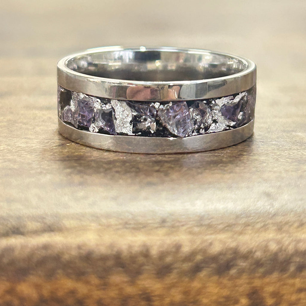 "Moorland Moon" River Ring - UNISEX! - NEW -Amethyst and Witby Jet In Sterling Silver